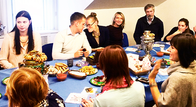 После первой части мероприятия гости погрузились в атмосферу настоящего английского чаепития вместе с Крайтоном П. Брауэром, собственником и управляющим Британским языковым центром «Globus International». Выпускники и слушатели РШУ с удовольствием приняли участие в викторине, посвященной вопросам времени и искусству управления им. Несмотря на то, что Крайтон проводил мероприятие на английском языке, дружелюбная атмосфера и дух сказки позволили участникам с легкостью отвечать на каверзные вопросы.